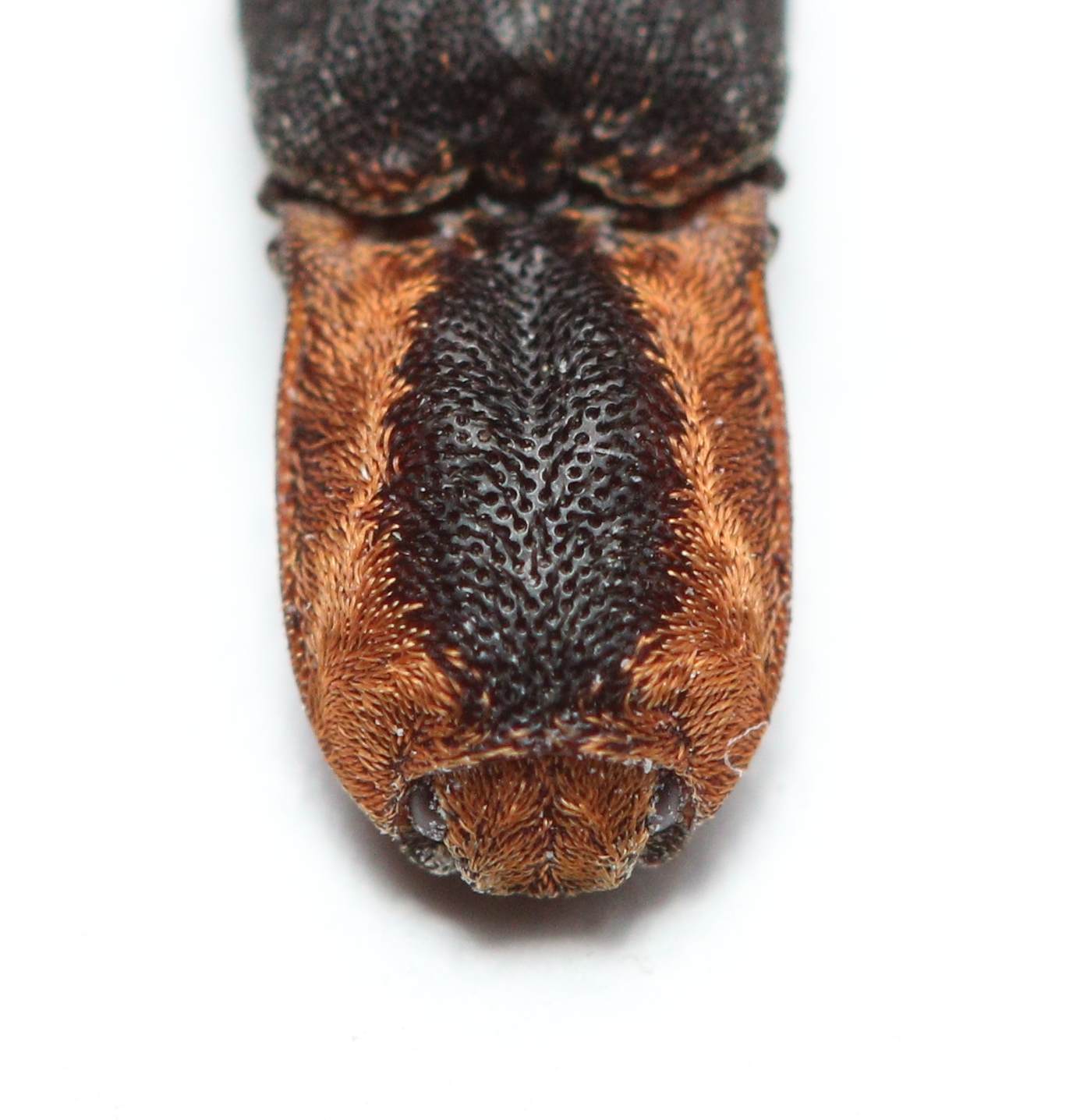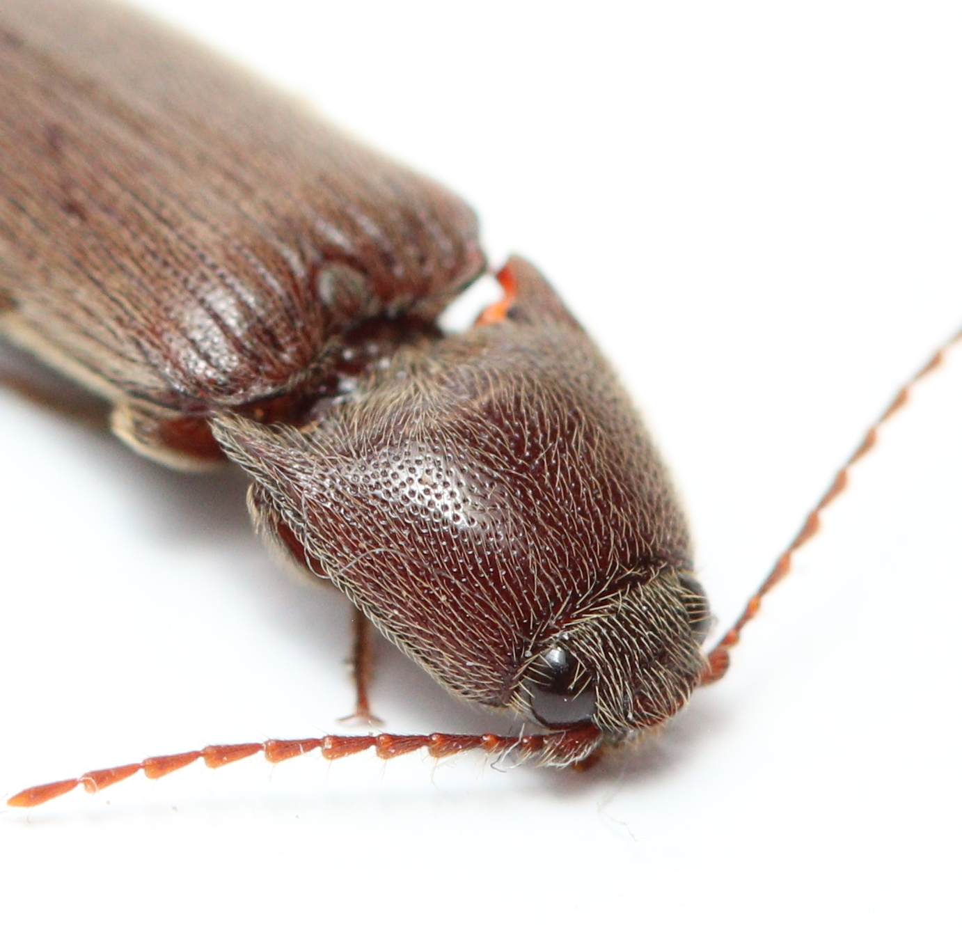 To be honest, I had no idea that click beetle faces looked so cool until I shot this guy. This particular one had a lot of light-colored hair that enabled me to get some very clear shots. Unfortunately, many of the chestnut/brown/red click beetles are very hard to ID to species and require an expert and/or a dissection and examination of the terminalia.