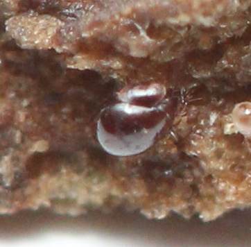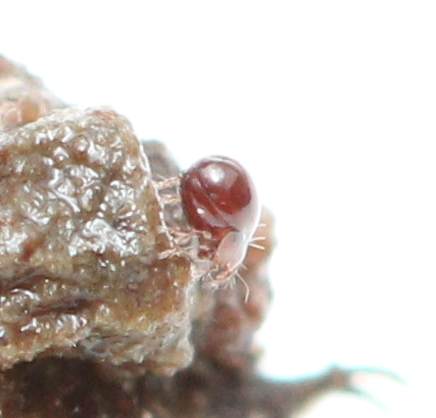 These tiny mites are at least five times smaller than the smallest globular springtail that I have ever seen, so hopefully you can excuse my picture quality. 😉 I found a whole colony of these bizarre mites in an old pet cage that had a layer of leaf litter, some wood to hide under, and some rotting fruit in it. Perfect conditions for a whole array of soil life! They seemed content to live among the hundreds of silver springtails and various other mite species in the old container. I opened the cage to clean it out last month, but noticing that the cage was serving as a perfect habitat for a whole hierarchy of life, I became so wrapped up in watching the community that it was a half an hour before I could pull myself away and put the lid back on. The next day I came back to photograph this little cage, and spent my whole hour of photography class on it that day! I had no idea that creatures like this existed, and I am hoping to purchase a clip-on lens to give extra magnification and capture these little critters in greater detail!