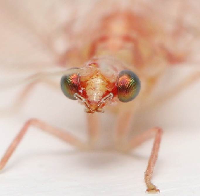 This lacewing struck me when I saw it flying around our porch light, because I didn’t recall ever seeing an orange lacewing before. I later found out that it is just the winter form of the common green lacewing family that I see all the time. The eyes were magnificent, and it is a pity that I couldn’t get better pictures. I will have to try again! Even after being refrigerated for hours, this specimen was hyperactive. Even with Isaac’s help, it was still over twenty minutes before he settled down enough for me to get decent shots.