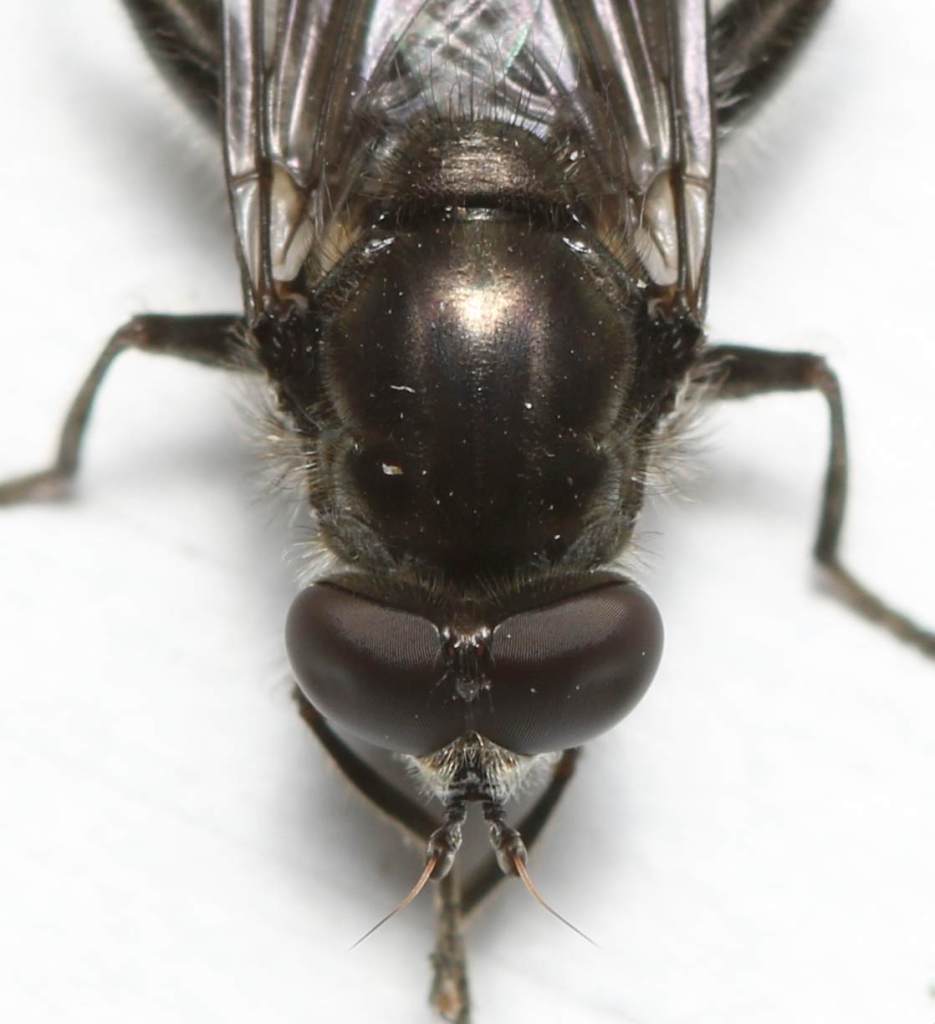 I wanted to introduce you to a few common flies that you can expect to encounter. One of the most common flies, especially in the spring, is the genus Pollenia. These are called cluster flies because of their mass hibernation habits, and their scientific name comes from the fact that these flies are almost always seen with pollen or dust caught in their hair. I don’t know why that is (other pollen-consuming flies don’t have it stick to them nearly as much), but it is pretty constant when I encounter members of this genus. One of the first characteristics of this genus is their size. Most species are very large and the only other flies like them are large tachinids (but usually are brightly colored and have stiff bristles all over them) and blow flies in the subfamily Calliphorinae (distinguished by having reflective blue abdomen). Also check for silver patterns on the abdomen to confirm that you have a Pollenia.